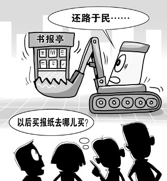其次,報刊亭影響市民走路的說法是沒有道理。筆者在鄭州呆過好一段時間,每天一早都會到報攤上買幾份報紙,對街頭上的報刊亭印象特別深刻。可以說,一個個報刊亭為城市增添了色彩,豐富了城市文化生活。有報刊亭的城市,顯得更有人情味和生活氣息。從來沒有誰說報刊亭影響了自己走路。一個城市,不能光有寬敞的馬路、高大的樓房,還要有為民眾文化服務(wù)的報刊亭等等,這樣的市容才是完整的,美麗的。把報刊亭都弄光了,城市就漂亮了嗎?