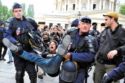 5月26日,法國巴黎,G8峰會抗議者被警方抬走。