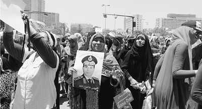 反對穆爾西的民眾在解放廣場手舉國防部長塞西頭像,興高采烈。