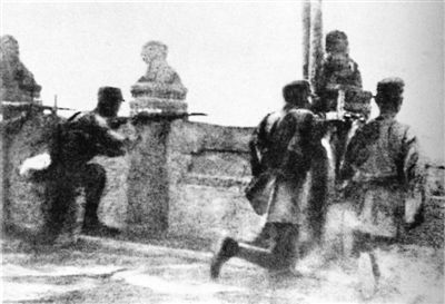 中國(guó)軍隊(duì)在盧溝橋上還擊日軍。