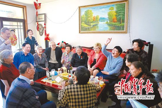 4月16日,曾在俄羅斯伊萬諾沃國際兒童院學習、生活過的10多位老人在聚會時,與伊萬諾沃國際兒童院現任院長一起唱俄語歌。接受本報采訪的趙綺蓮、李多力等人都曾參加這次聚會。本報記者 趙迪/攝