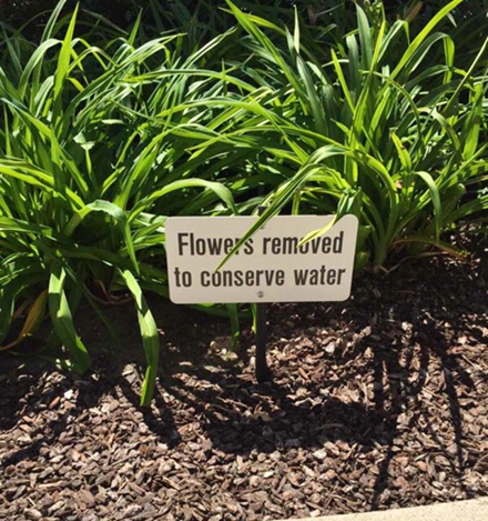 人民網舊金山5月5日電 (韓莎莎)硅谷一些公司前的花坪里新翻的土鋪著木屑,嫩綠的低矮草叢在陽光下閃著光。引人注目的是,不止一處花坪前豎著一塊木板,寫道:“為了節水,花被移除。”