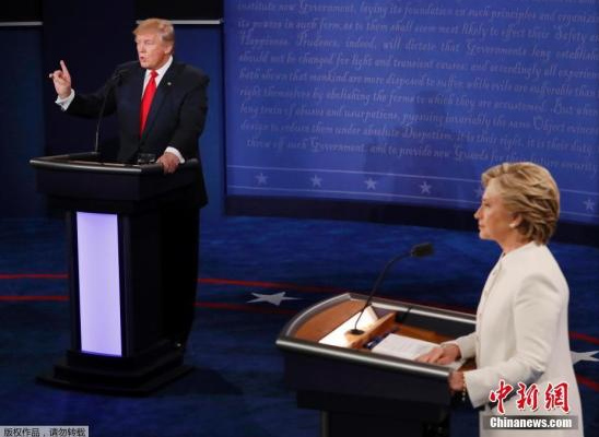 當地時間2016年10月19日,美國拉斯維加斯,2016美國總統大選第三場辯論也是最后一次辯論在美國內華達大學拉斯維加斯分校舉行。