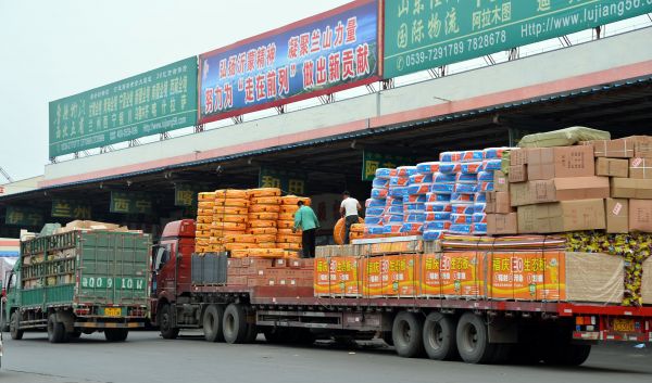 臨沂蘭山物流園的商家在搬運發往中東和中亞的貨物(5月4日攝)。新華社記者范長國攝