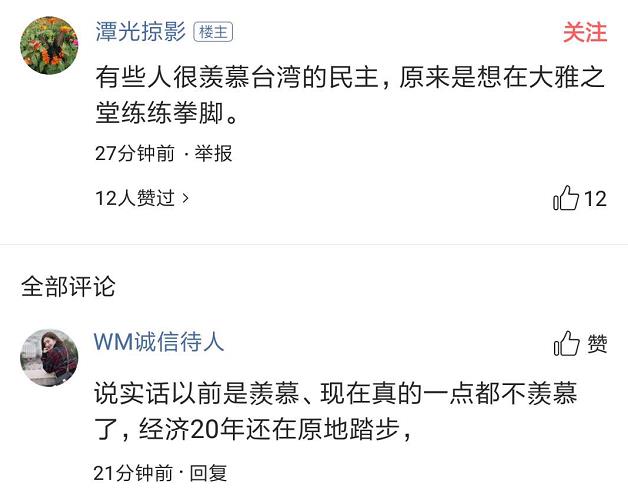 很多年前,“臺式民主”曾經(jīng)給一些大陸人留下過不錯的印象;但隨著信息的開放,當大陸網(wǎng)友對臺灣政壇有了更深入、更直觀的認識后,“臺式民主”的神秘感消失了,大陸網(wǎng)友的崇拜感和臺灣網(wǎng)友的優(yōu)越感也在消失。再加上,大陸網(wǎng)友自身的制度自信不斷增強,對“臺式民主”很容易產(chǎn)生“本以為是個王者,沒想到是個青銅”的感覺。