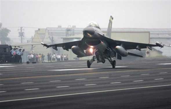 臺(tái)空軍F-16戰(zhàn)斗機(jī)滑跑起飛