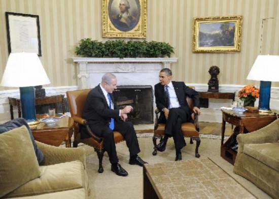 以色列總理內(nèi)塔尼亞胡3月5日,在美國首都華盛頓白宮橢圓形辦公室,美國總統(tǒng)奧巴馬(右)會見到訪的以色列總理內(nèi)塔尼亞胡。