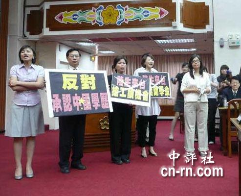 圖:民進黨昨天甲級動員,阻擋承認大陸學歷的草案通過。(圖片來源:香港中評社)