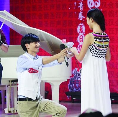 “快男”熱門選手左立曾說,進入10強就向女友熊小玥求婚,昨天他終于兌現諾言,在《天天向上》的錄制現場,單膝跪地向女友成功求婚。左立的誓言感動了在場所有觀眾:“今后無論發生什么我都會在你身邊,我會變得更加強大,賺更多錢。”(新聞鏈接)