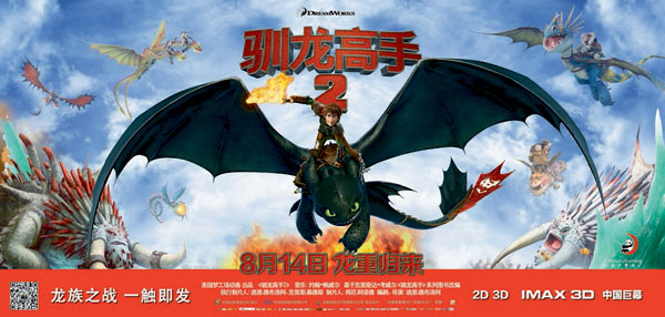 好萊塢夢工場動畫巨制《馴龍高手2》,于昨日(14號)在內地以2D、3D、IMAX 3D、中國巨幕全格式上映。據“中國電影票房吧”統計數據顯示,《馴龍高手2》首日票房已達4020萬,僅次于《功夫熊貓2》,晉級動畫電影內地首日票房亞軍。