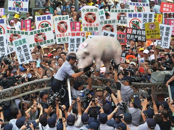 臺灣養(yǎng)豬協(xié)會到“立院”外抗議。(圖片來源:臺灣《中國時電子報》)