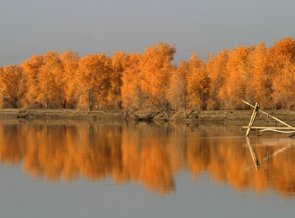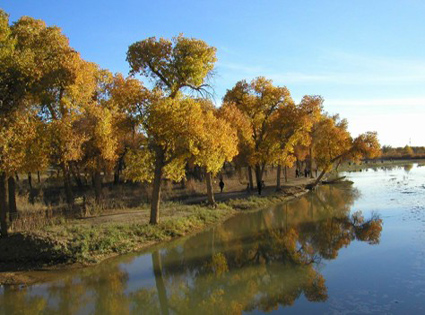 枯死一片,成活另一片,胡楊樹間有沙丘,是否還在繼續推進?勿曉得。還有兩棵著名的胡楊樹,不得不提。它們的確是身材出眾,不同凡響。是子母樹還是雌雄數現在已經記不清楚了。