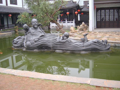 正當(dāng)李魯班一籌莫展時,一位白發(fā)老人走了過來,問清緣由,便把背的包袱打開,指著編有號碼的木它它說:“這些小玩意兒,你若喜歡,不妨拿去擺弄擺弄,或許會擺出一些名堂來。若是還差點什么,就到連升客棧來找我。”李魯班接過來,擺了又撤,撤了又擺,果然構(gòu)成了一座十分雄壯的樓型。大家十分高興,都說是祖師爺顯靈,向白發(fā)長者道謝。老人說自己是魯班的徒弟,姓盧。后來,老者在湖邊留下了寫有“魯班尺”3字的木尺,一陣風(fēng)后不見了。工地上人群紛紛跪下,向老者逝去的方向叩頭不止。 不久,一座新樓拔地而起,高聳湖岸,氣象萬千。