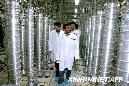 這張拍攝于2008年4月8日的資料照片顯示的是伊朗總統(tǒng)艾哈邁迪-內(nèi)賈德視察納坦茲核設(shè)施。2月9日,伊朗在納坦茲核設(shè)施開始生產(chǎn)純度為20%的濃縮鈾。 新華社/法新