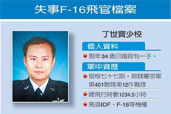 中新網(wǎng)3月5日電 據(jù)臺灣《聯(lián)合報》報道,臺灣空軍少校飛行員丁世寶昨晚駕駛F-16戰(zhàn)機在花蓮外海失聯(lián)。臺空軍初步分析,很可能已經(jīng)墜機。