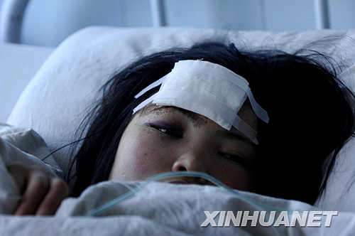 拉薩移動公司的營業(yè)員王倩在拉薩第二人民醫(yī)院接受救治(3月16日攝)。新華社記者 普布扎西 攝