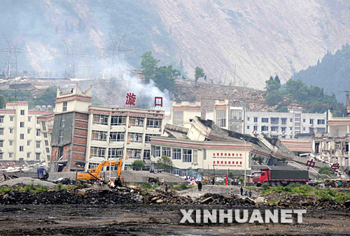 這是遭到嚴重破壞的汶川縣映秀鎮漩口中學樓房(5月14日攝)。 新華社記者陳樹根攝