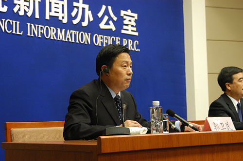 圖為新聞發布會主持人郭衛民發布災區最新情況。中國政府網 張泳攝
