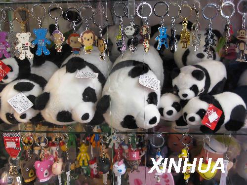 臺北“熊貓熱”持續不減,圖為商店里銷售的熊貓玩具。新華社記者王妍攝