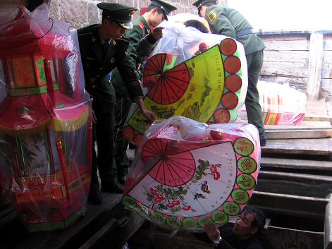 為了做好這批花燈安全迅速運抵馬祖,黃岐邊防派出所專門開通綠色通道迅速通關,同時組織官兵清理航道,優(yōu)先為運燈船只安排泊位,并協(xié)助搬運花燈。負責運送的馬祖臺胞劉先生深情地說:“每逢佳節(jié)倍思親,每一盞花燈都代表著祖國同胞炙熱的心,兩岸花燈一定會越點越紅火!”
