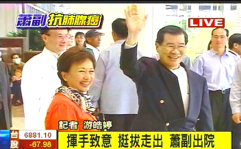 蕭萬(wàn)長(zhǎng)切除肺腫瘤后于3日下午提前出院(圖片來(lái)源:臺(tái)灣TVBS電視臺(tái))