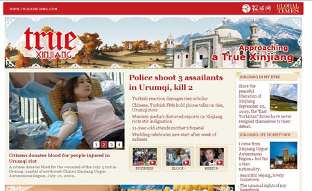 由英文環(huán)球網(wǎng)( www.globaltimes.cn)主辦的真實(shí)新疆網(wǎng)( www.truexinjiang.com)于2009年7月13日正式開通,這是目前中國國內(nèi)首家全面介紹新疆的英文網(wǎng)站。