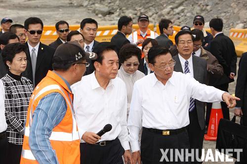 12月24日,海協(xié)會(huì)會(huì)長(zhǎng)陳云林(前中)率海協(xié)會(huì)協(xié)商代表團(tuán)部分成員赴南投縣水里鄉(xiāng)新山村,考察“八八水災(zāi)”災(zāi)區(qū)。海基會(huì)董事長(zhǎng)江丙坤、南投縣縣長(zhǎng)李朝卿陪同考察。新華社記者 袁滿 攝