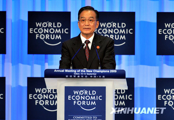 9月10日下午,世界經濟論壇第三屆新領軍者年會(2009年大連夏季達沃斯年會)在大連世界博覽廣場開幕,國務院總理溫家寶出席開幕式并致辭。新華社記者謝環馳攝