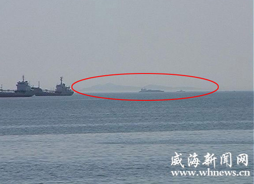 記者在現場看到,“海市蜃樓”出現在劉公島的南側海域,形狀幾乎和劉公島一模一樣,但卻比劉公島小了一圈,并且隨著時間的推移,慢慢變小。(王婕 孫崳峰)