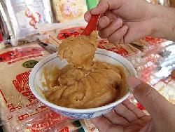 面茶是用豬油、紅蔥頭新鮮拌炒,打開袋子,光聞面粉就覺(jué)得香噴噴,加水?dāng)嚢杈褪丘こ淼拿娌瑁梢纻(gè)人喜好控制黏稠度,也可以加油條或是碰餅(泡餅)的吃法,尤其冬天來(lái)上一碗熱騰騰的面茶,又香又暖胃,而杏仁茶則是用南杏磨制的,味道不會(huì)太甜,香醇可口。林老板說(shuō),他們是淡水老街第一個(gè)賣面茶的店,堅(jiān)持面茶、杏仁粉內(nèi)不加香料,保持食材的原味,對(duì)于顧客健康也有保障。(大臺(tái)灣旅游網(wǎng) 攝影/郭嘉琳)