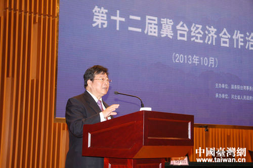 孫亞夫在第十二屆冀臺經(jīng)濟合作洽談會上致辭(中國臺灣網(wǎng) 雍紫薇 攝)