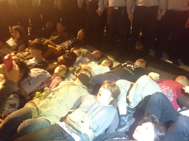 抗議青年直接躺在馬英九辦公室前。(臺(tái)媒圖)