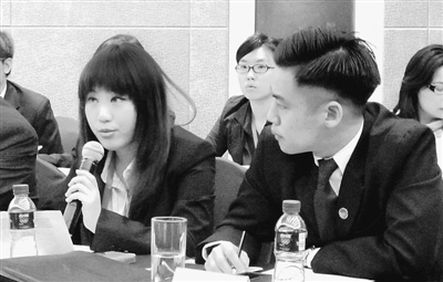 淡江大學(xué)學(xué)生林欣諭就兩岸青年學(xué)生交流發(fā)表自己的看法。人民日?qǐng)?bào) 記者孫立極攝