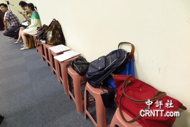 記者用各種東西卡位。(中評社 彭媁琳攝)