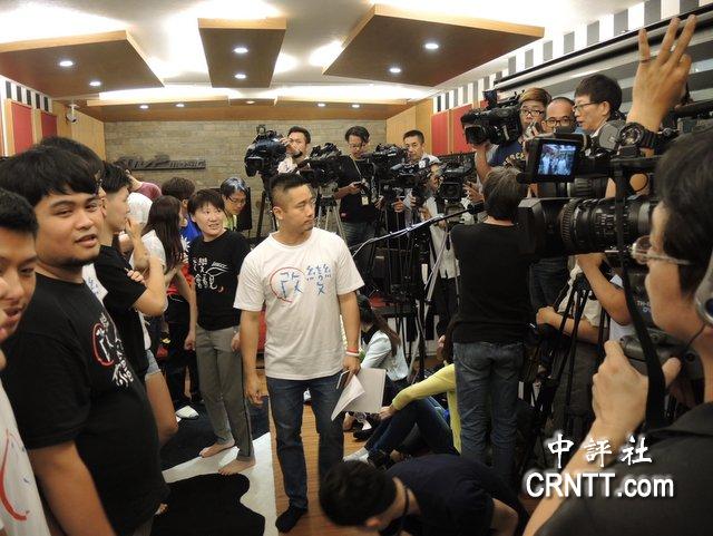 洪秀柱錄制競選歌曲,錄音室擠滿媒體。(中評社 黃筱筠攝)