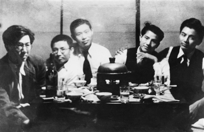 1937年,臺灣屏東佳冬蕭家后人蕭道應(左一)與摯友聚餐商討籌組醫(yī)療服務團,返回大陸參加抗日戰(zhàn)爭,其曾祖父蕭光明是1895年組織鄉(xiāng)勇抗擊入侵日寇的客家領袖。新華社發(fā)