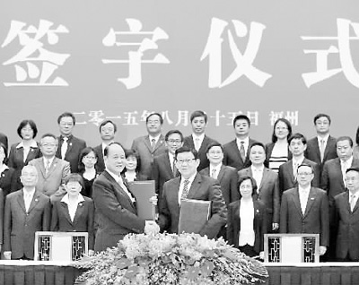 海峽兩岸關系協會會長陳德銘與臺灣海峽交流基金會董事長林中森8月25日在福州舉行兩會恢復協商以來的第十一次會談。雙方簽署了《海峽兩岸避免雙重課稅及加強稅務合作協議》、《海峽兩岸民航飛行安全與適航合作協議》,并確定了兩會今后會談協商議題。