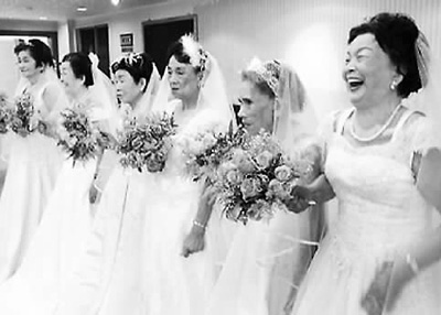 紀錄臺籍慰安婦故事的影片《蘆葦之歌》中收錄的6位阿嬤穿上婚紗的畫面。(圖片自臺媒)
