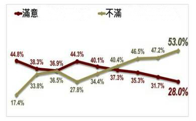 對于林全的施政表現(xiàn),僅28.0%民眾滿意,高達(dá)53.0%表示不滿意,比此前不滿意度增加5.8%。