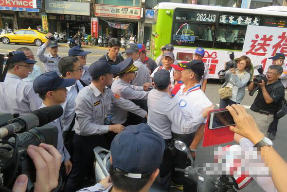 雙方在現場一陣拉扯,互相嗆聲,“愛國同心會”人士趁機奪下“臺聯黨”的抗議牌子撕爛,高喊“只有中國,沒有兩邊”、“回去找你們李登輝”。隨后警方強行介入隔開雙方,還要求“一人一邊、各自表述”,不要有違法的言行。