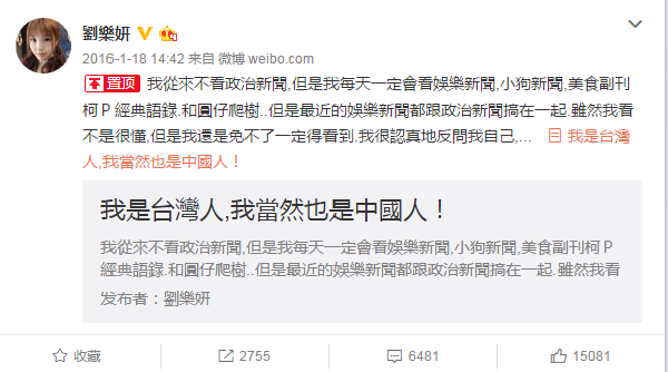 A:我覺得我做的是對的,我說的也沒錯。而且我覺得我是中國人這件事情,不是我現在才覺得我是一個中國人,我從小到大都覺得我是一個中國人,為什么不能講?