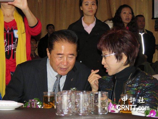 中國國民黨主席洪秀柱(右一)和夏瀛洲(左一)交談。(圖片來源:中評社)