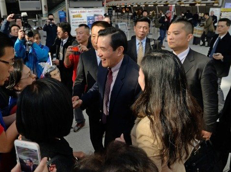 馬英九在肯尼迪機(jī)場(chǎng)受到熱烈歡迎。(臺(tái)媒圖)