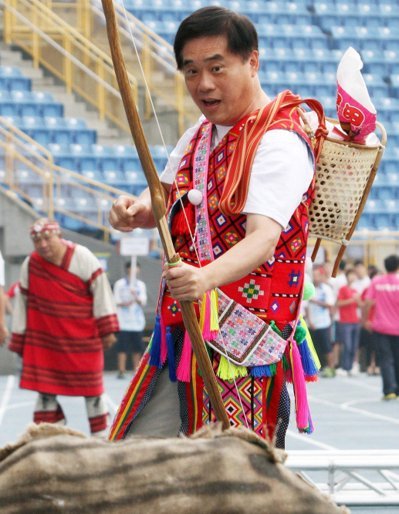 郝龍斌當市長時參加活動,與上千名嫻熟弓箭的臺灣少數民族人士齊聚臺北田徑場。郝龍斌“示范”射山豬,前兩箭都“挖地瓜”,落在腳前;后三箭則卡在手上。郝龍斌笑說,“現在我還不夠格作‘原住民’”,既自我解嘲,也讓“原住民”聽了舒服、心里輕飄飄的。