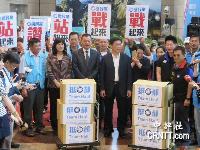環球網綜合報道 國民黨主席參選人郝龍斌18日上午率支持者30多人赴黨中央辦理登記,他們舉牌高喊“國民黨‘戰’起來,全力支持郝龍斌”,并繳交6大箱共10萬多份聯署書。