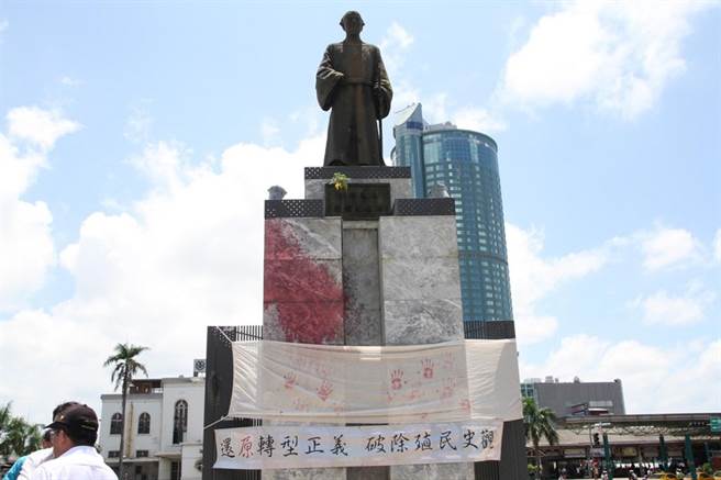 位于臺南的鄭成功銅像曾遭人潑紅墨水破壞(圖片來源:“中時電子報”)