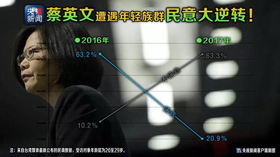 (央視新聞客戶端)臺灣當(dāng)局領(lǐng)導(dǎo)人上臺近一周年,多項民調(diào)顯示,蔡英文的支持率大幅下滑,不滿意度陡增。臺灣媒體特別關(guān)注到,去年力挺蔡英文的20至29歲年輕族群一周年之間發(fā)生大逆轉(zhuǎn),成為對蔡最為不滿的人群。媒體稱“這對認為自己最理解年輕人的蔡英文而言,無疑是重大警訊”。