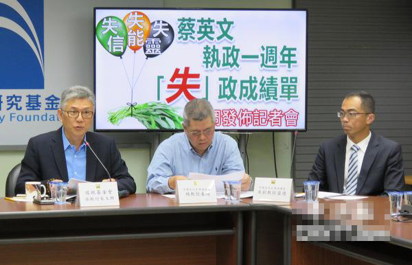 國民黨智庫舉行蔡英文執(zhí)政一周年“‘失’政成績單”民調發(fā)表記者會。(圖片來源:中評社)
