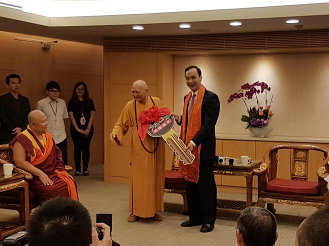 新北市長朱立倫今(15日)出席捐贈復康巴士儀式(圖片來源:臺灣《中時電子報》)