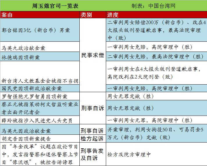 中國臺灣網(wǎng)10月7日訊 據(jù)臺灣《中時電子報》報道,臺灣名嘴周玉蔻,經(jīng)常自稱可透過特殊管道掌握內(nèi)幕消息,但卻屢因爆料而官司纏身,且因她錯誤爆料,除被前臺灣地區(qū)領導人馬英九提告外,鴻海董事長郭臺銘為了“3億男”案也對她提出高額的民事求償,這些官司中,她大多遭判賠或有罪,目前不少案件,正在法院審理中。